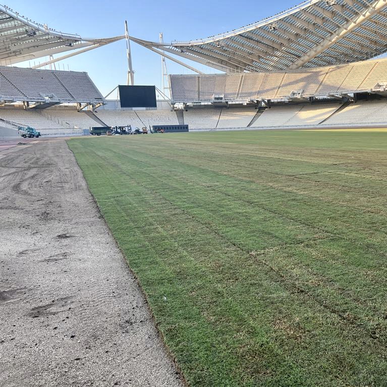 La nostra azienda ha fornito per una superficie di 8000 metri quadri circa, pratopronto® tipo Tifway419, per la realizzazione dello Stadio Olimpico di Atene.